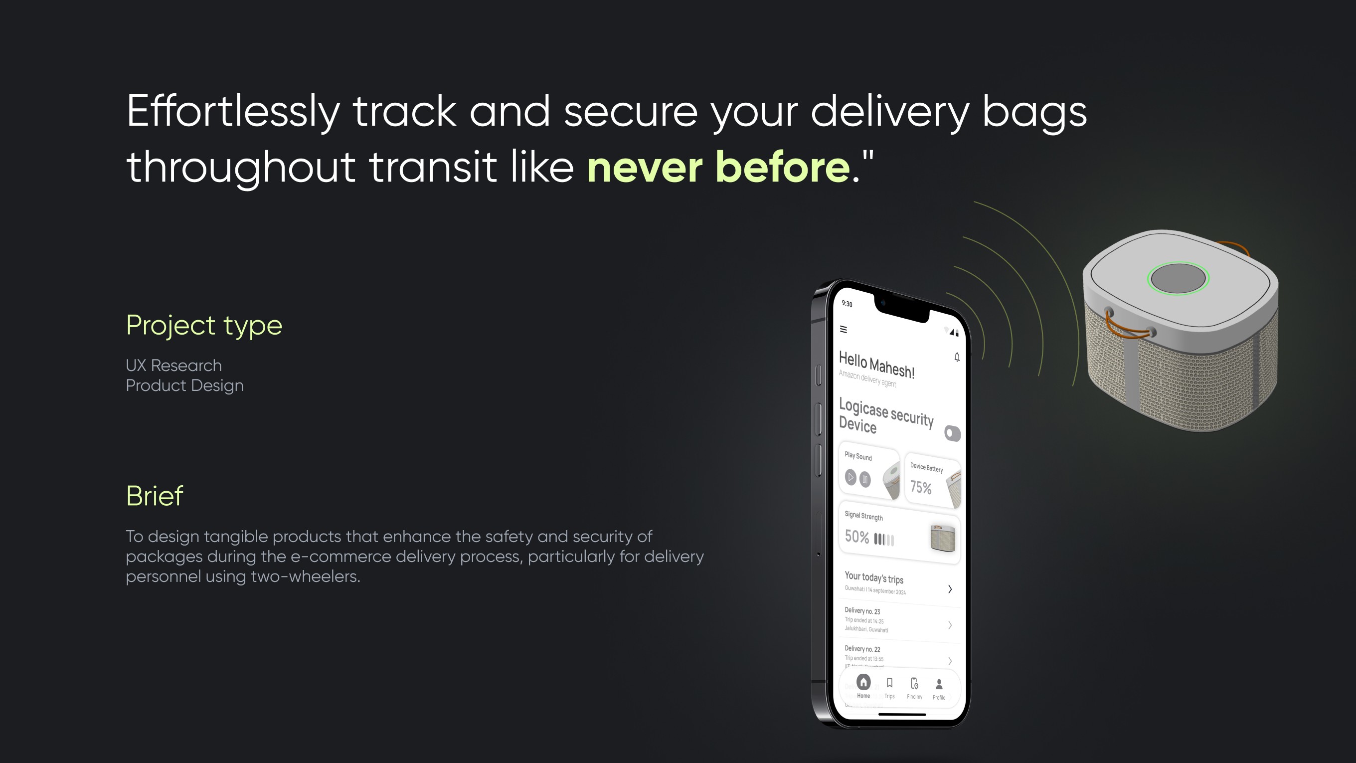 Logicase is a smart security device designed to protect packages during last-mile deliveries. It offers real-time tracking, theft alerts, and seamless mobile integration, providing delivery personnel with an easy and effective way to secure their deliveries.